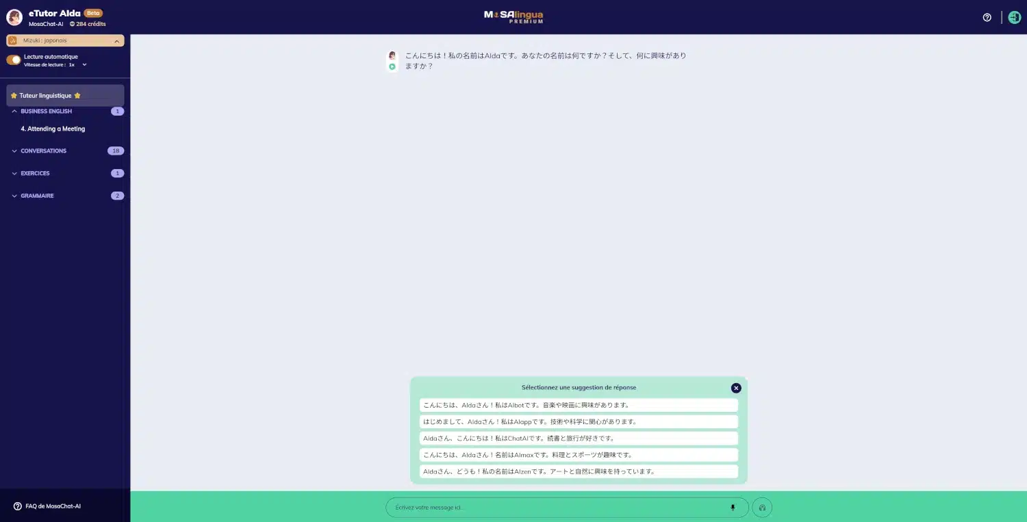 En 2023, une nouvelle fonctionnalité a été dévoilée : MosaChat-AI, un tuteur virtuel utilisant l’intelligence artificielle, pour converser dans toutes les langues de la plate-forme. Il est possible de discuter librement ou au contraire en suivant divers scénarios : acheter un billet de bus, demander une augmentation…