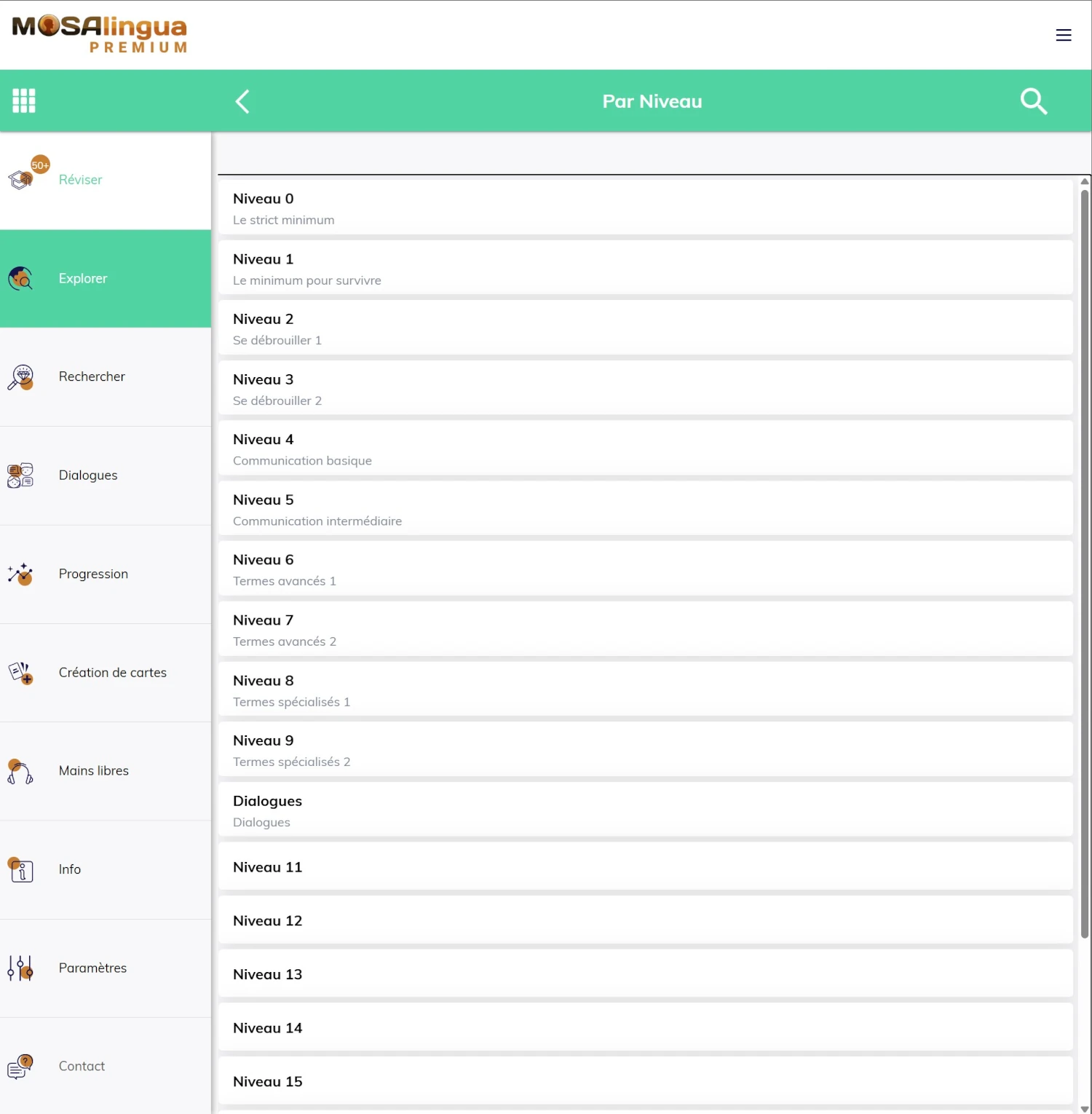 Il est également possible de changer de niveau au moment d’apprendre de nouvelles cartes. Par exemple, si vous avez déjà une bonne maîtrise de votre langue cible, vous n’aurez sans doute pas envie qu’on vous propose des expressions de base, du style « Salut » ou « Ça va ? ».