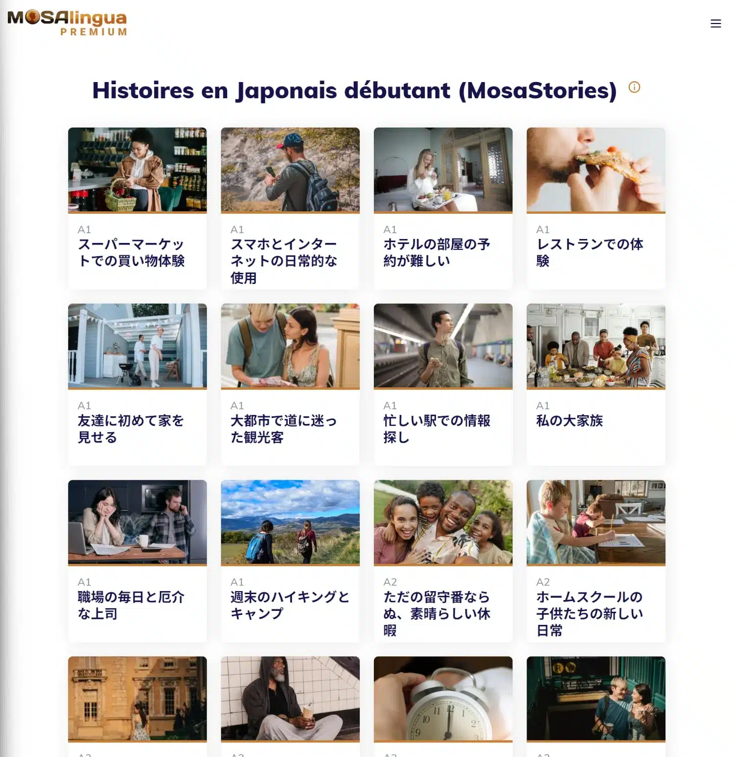 Un exemple de ressources : des textes de niveau A1-A2 en japonais.