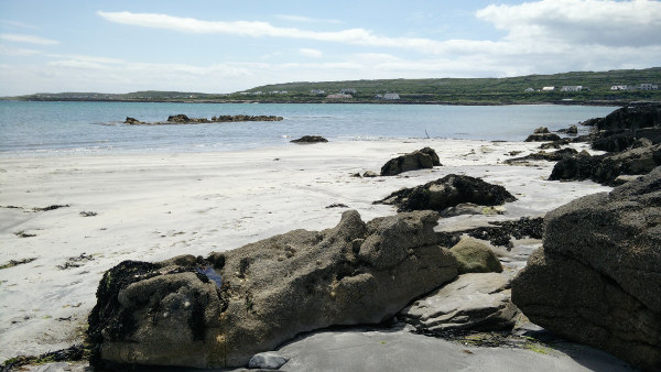 Notre visite terminée, nous rejoignons notre guide et deux autres passagers et nous reprenons notre route. Nous longeons la côte nord de l’île où se trouvent de très belles plages, dont une régulièrement fréquentée par une colonie de phoques, qui brille ce jour-là par son absence. Tant pis ! Nous retournons ensuite à Cill Rónáin, avec quelques heures devant nous avant notre ferry.